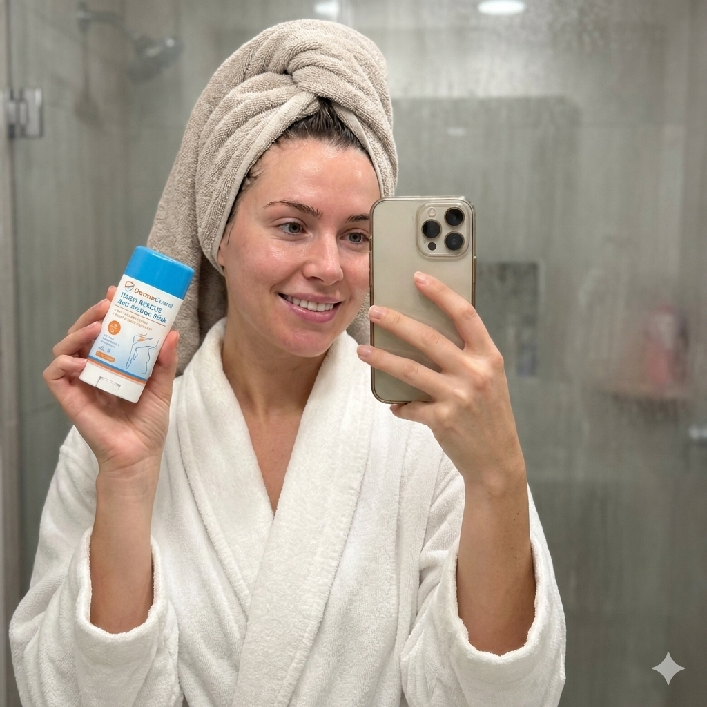 "I was honestly skeptical. I've been dealing with 'chub rub' every summer for years and usually end up wearing biker shorts under everything. I bought DermaGuard for a winter sun holiday and it is a total game changer. I walked all day in a dress and had zero irritation. It doesn't feel sticky like creams do, it just feels... smooth? It lasted through the heat too. Will be buying the 2-pack next time."